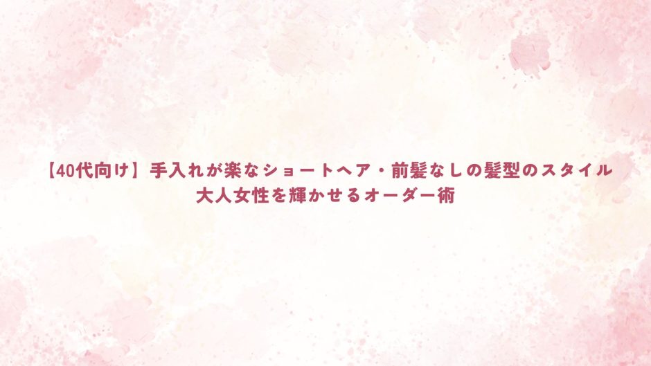 40代を迎えると、髪のボリュームやクセ、白髪などの悩みが増え、「毎日のスタイリングが面倒…」と感じる方も多いのではないでしょうか。そんな大人女性に人気なのが、手入れが楽で若見えも叶う「前髪なしショート」スタイルです。本記事では、なぜこのスタイルが40代に支持されるのかをはじめ、髪質や骨格に合った選び方、実際のヘアスタイル例や失敗しないオーダー術まで、幅広くご紹介します。