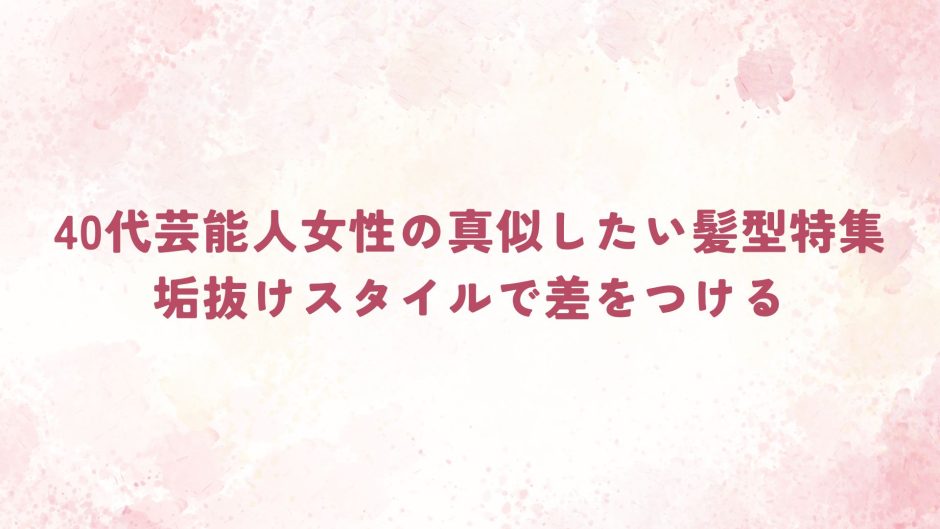 髪型を変えるだけで、自分の気分が大きく変わることってありますよね。40代の女性にとって、髪型は「印象」や「雰囲気」を左右する大切なポイント。しかも芸能人のような洗練されたヘアスタイルは、ただ憧れるだけでなく、実はとっても参考になるんです。さぁ、まずは真似から。あなたらしいスタイルを見つけに行きましょう。